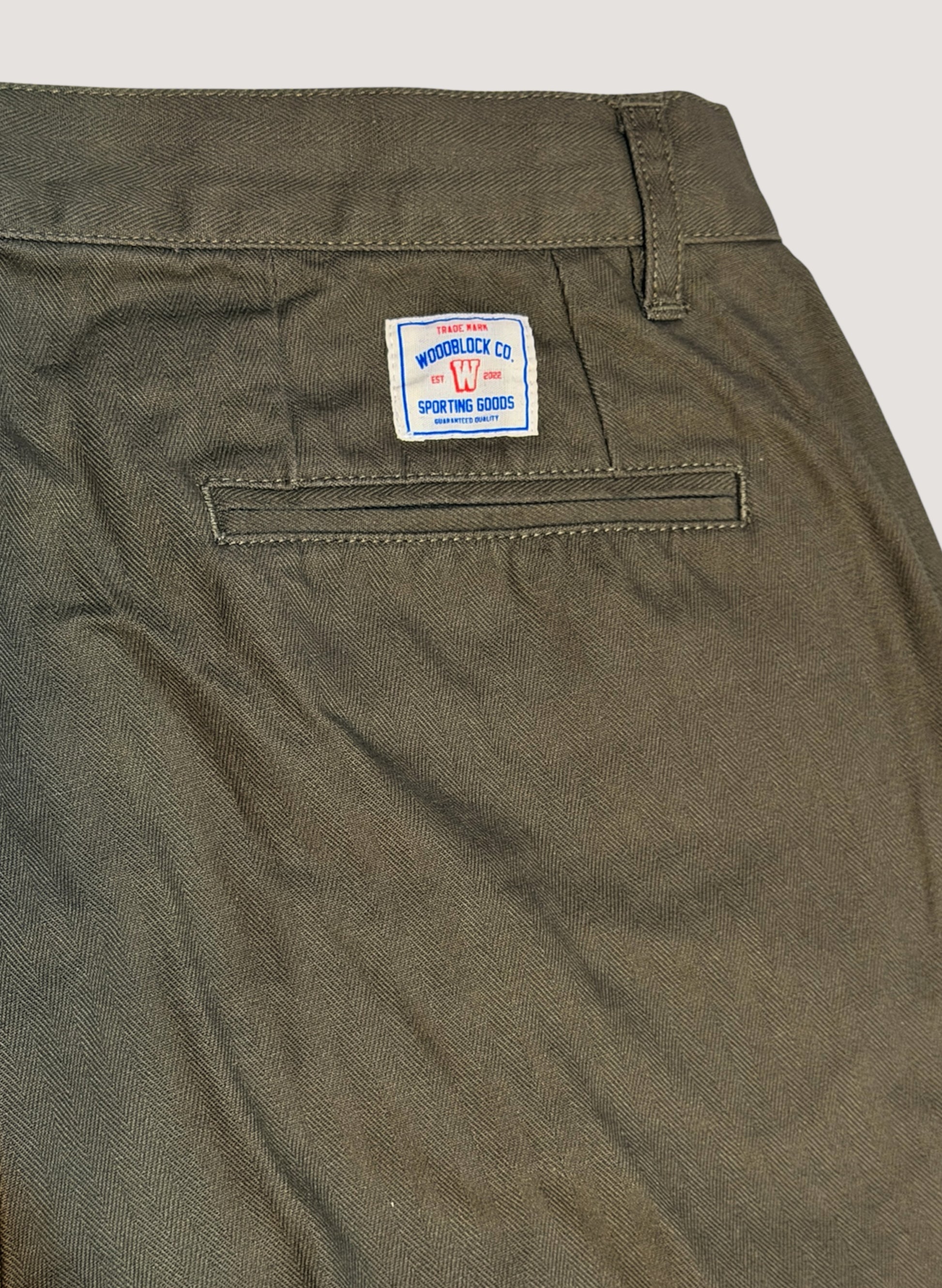 WOODBLOCK2TUCK HERRINGBONE TROUSER OLIVE (WB-25AW-005)