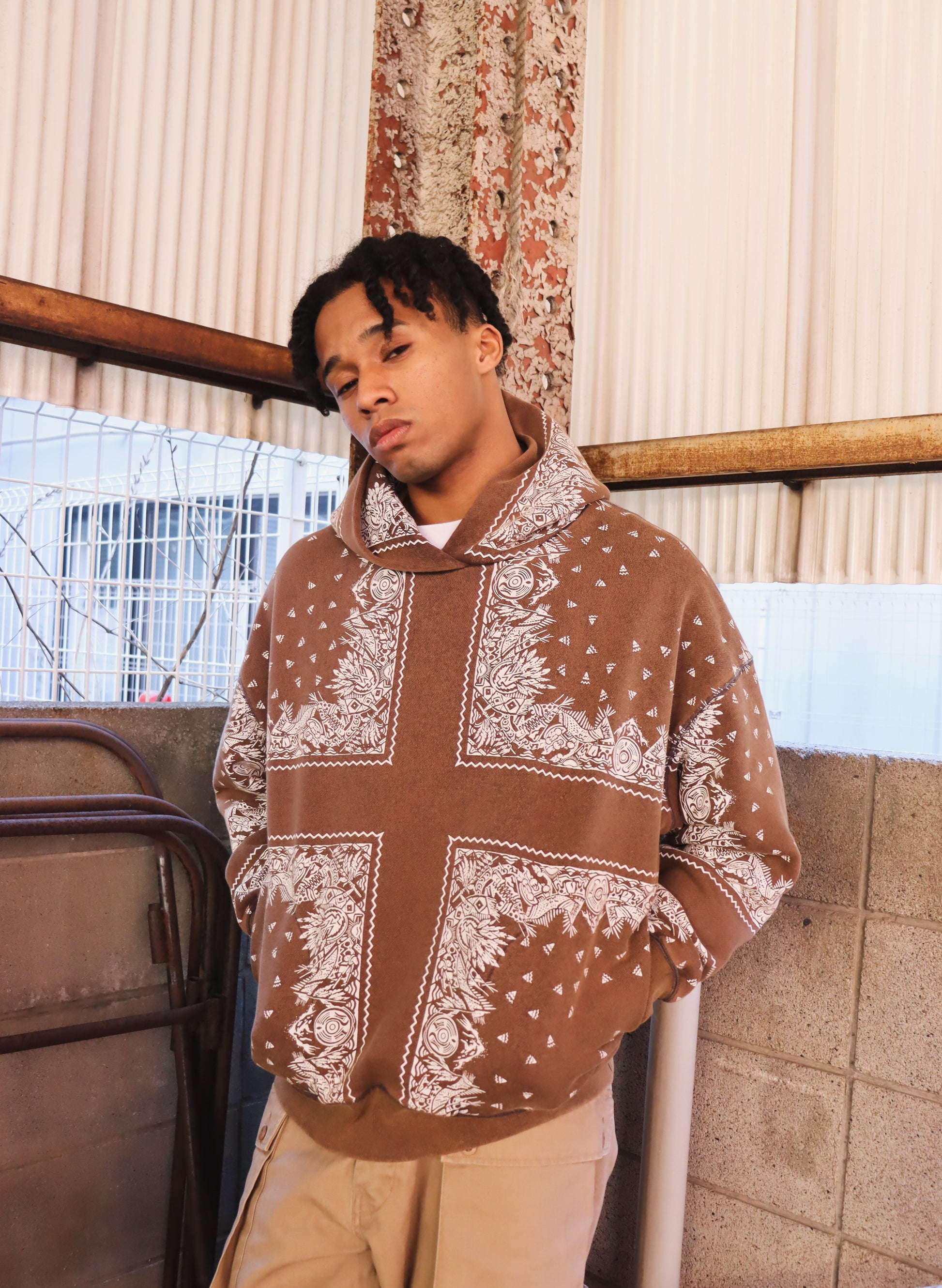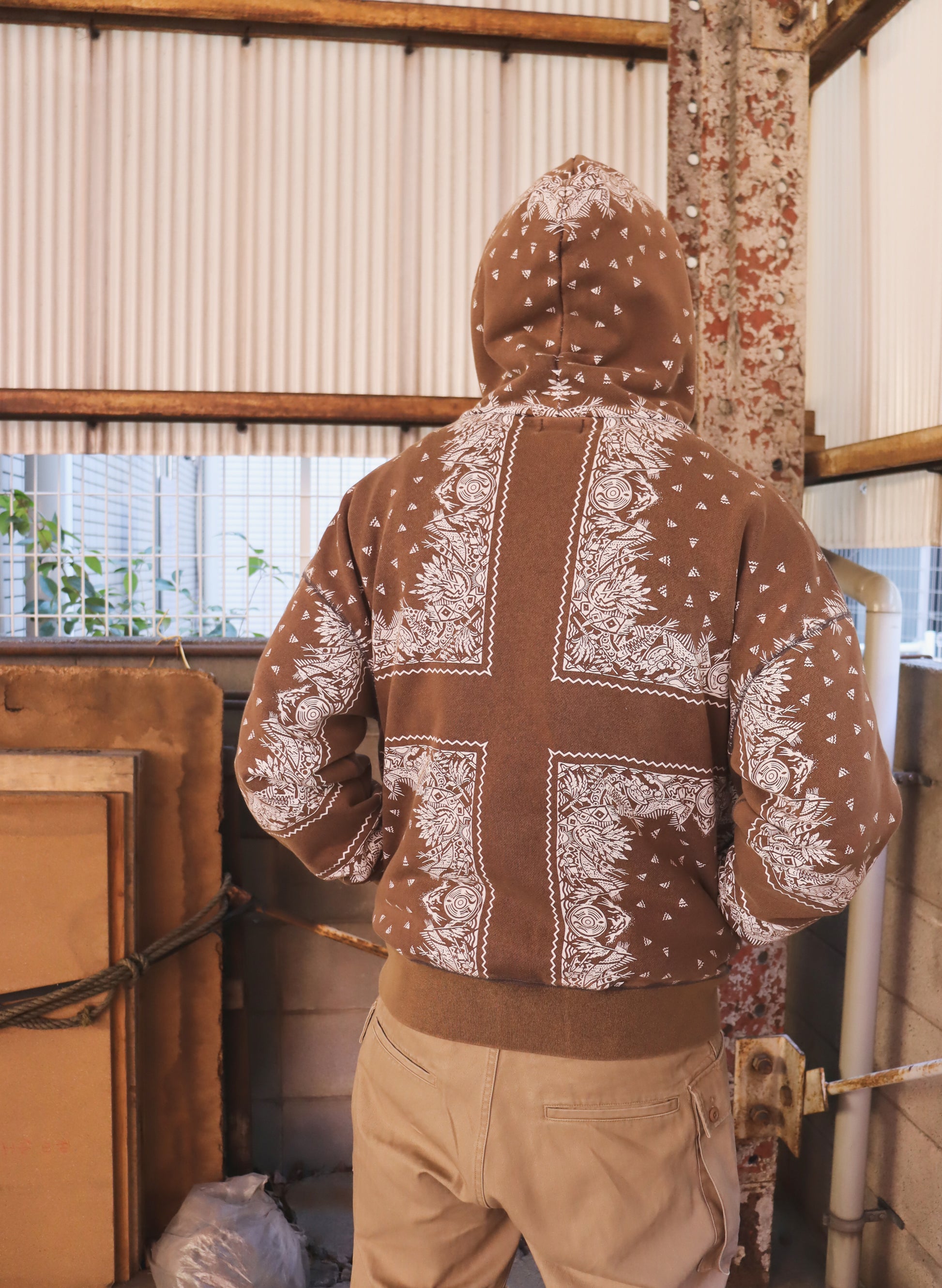 WOODBLOCK BANDANA SWEAT HOODIE BROWN (WB-26SS-001)