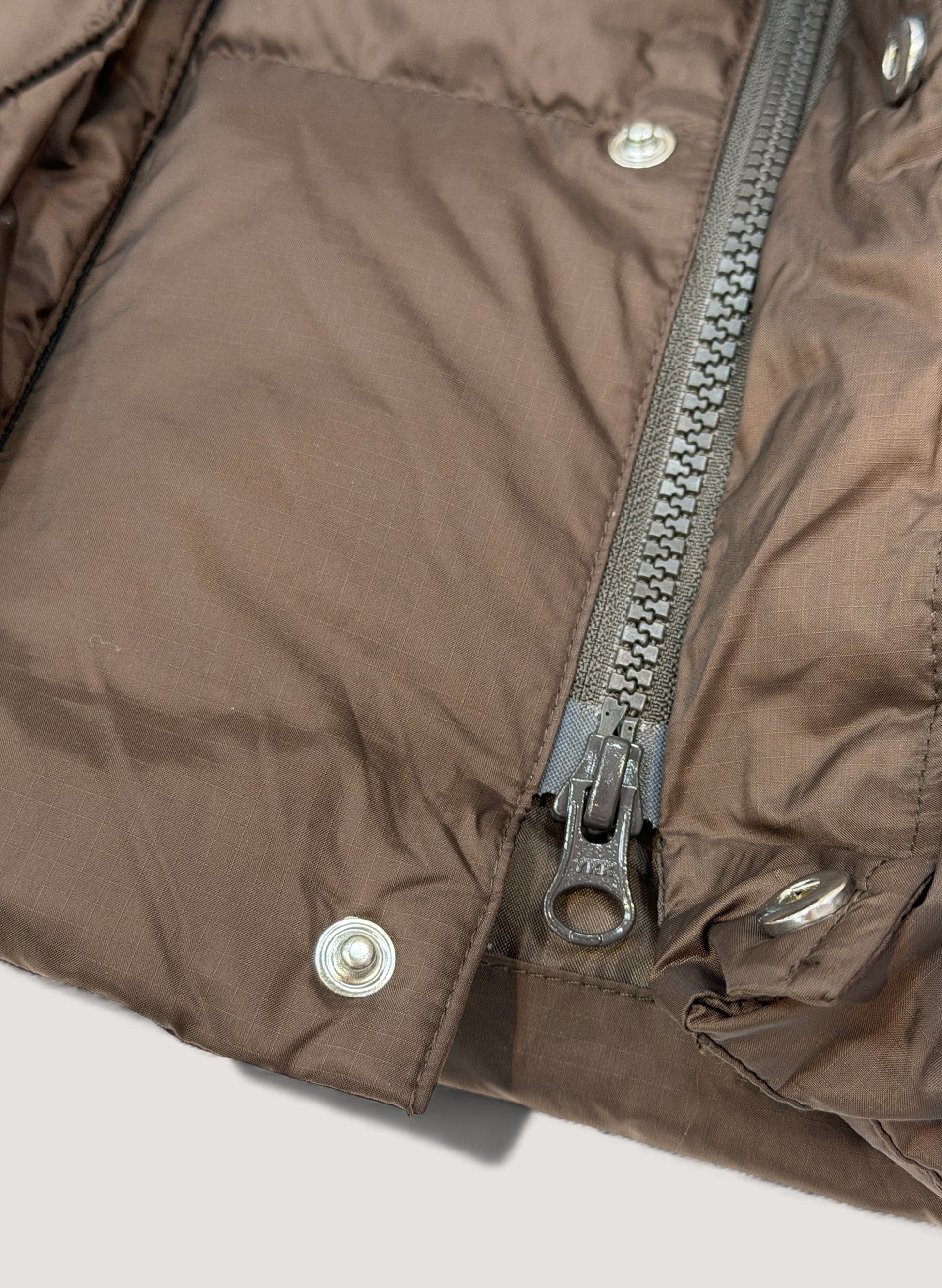 WOODBLOCK刻印入りオリジナルスナップボタン、ダブルジップ仕様。
