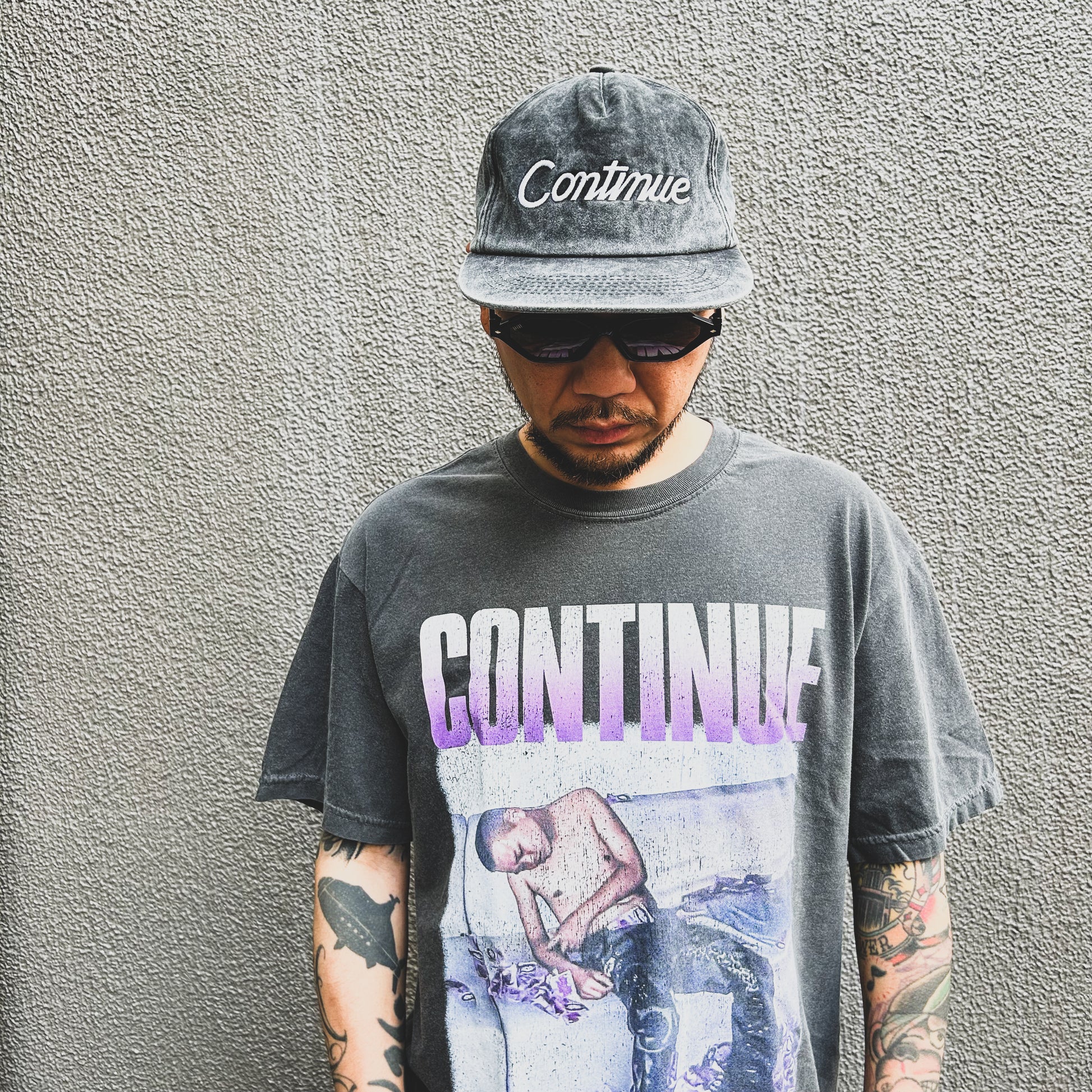 フロントパネルにはALBUMタイトルの「CONTINUE」のスクリプトロゴを厚盛り刺繍で施し、背面スナップバック両サイドにはWOODBLOCKとYSMのオリジナルロゴを刺繍で配置したコラボレーション仕様です。